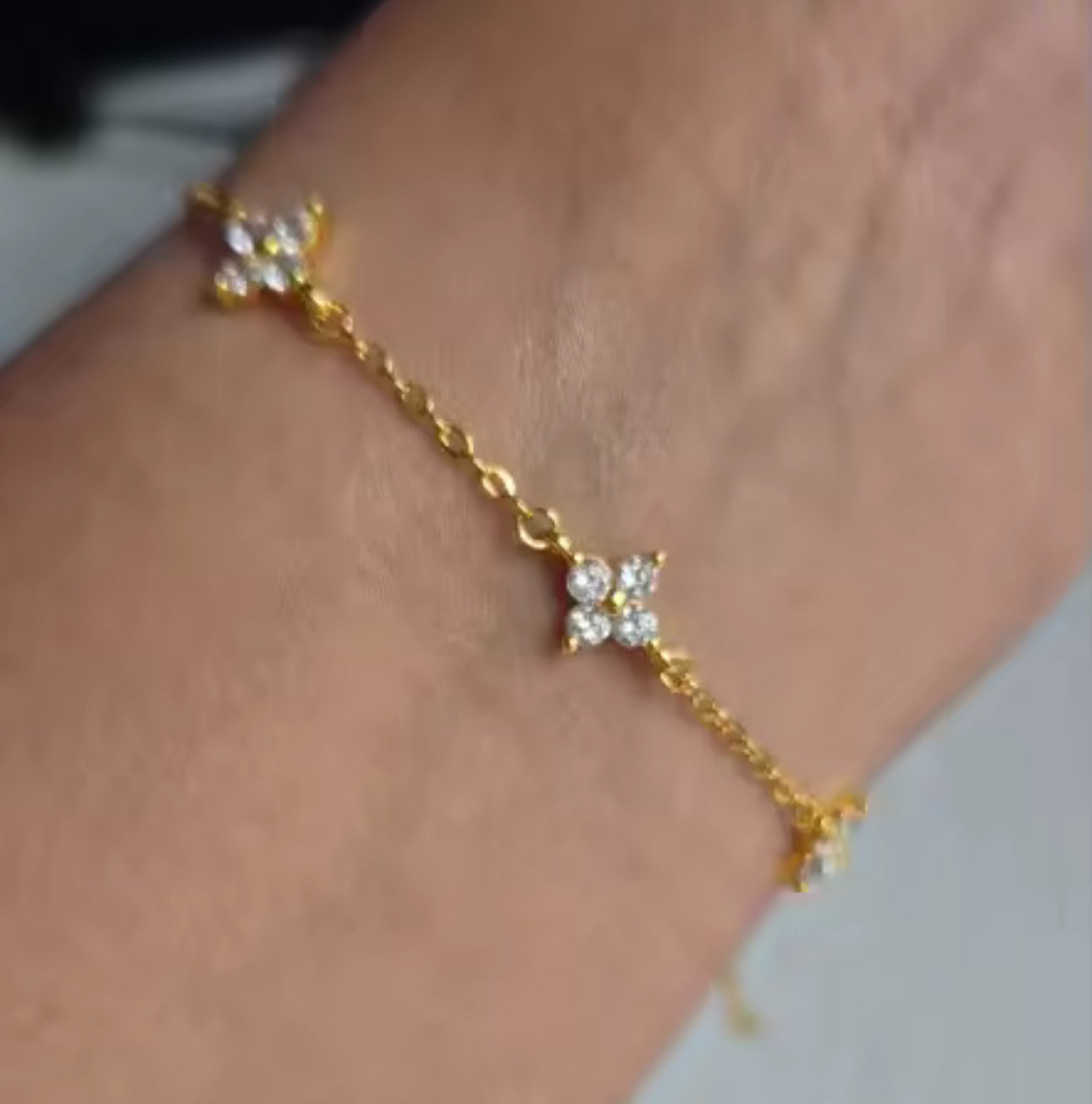 925 Sterling Silver 18k Gold Plated Single Clover Leaf Bracelet