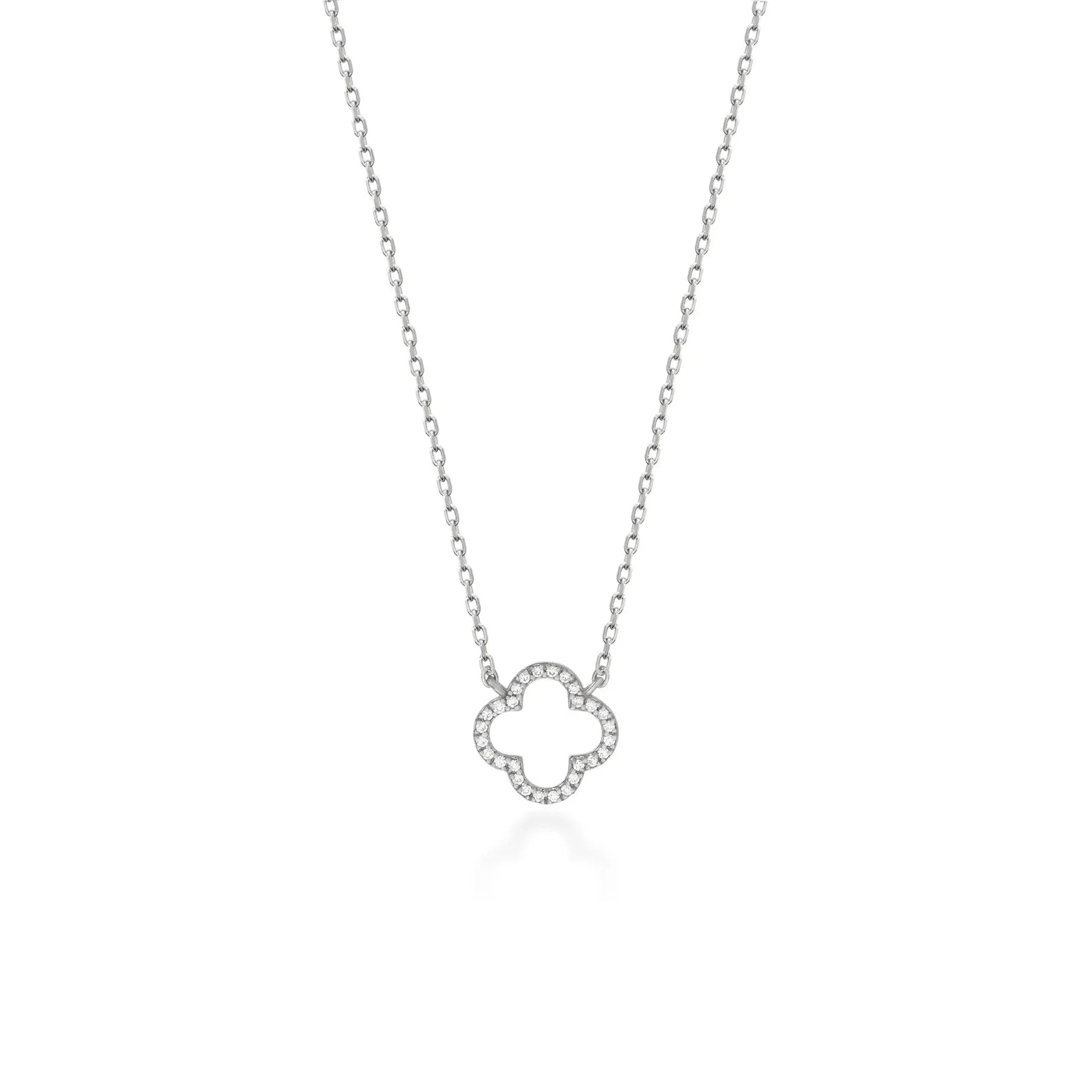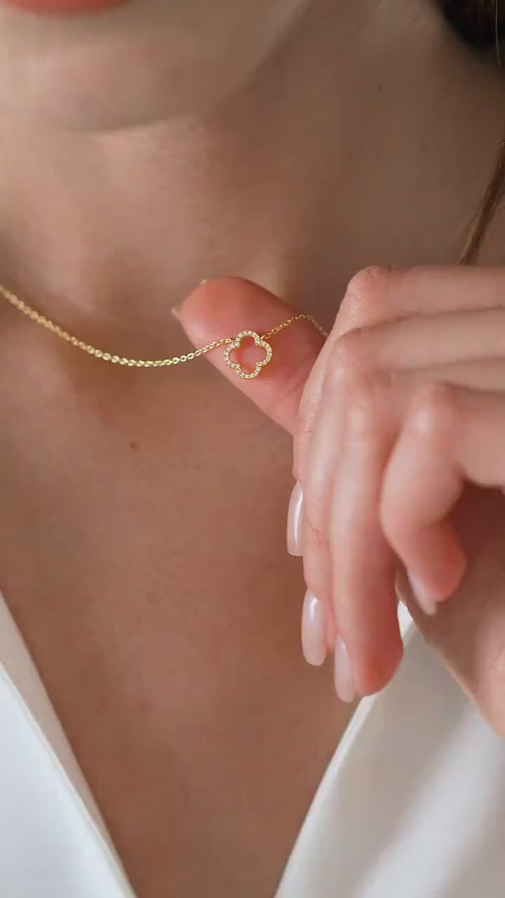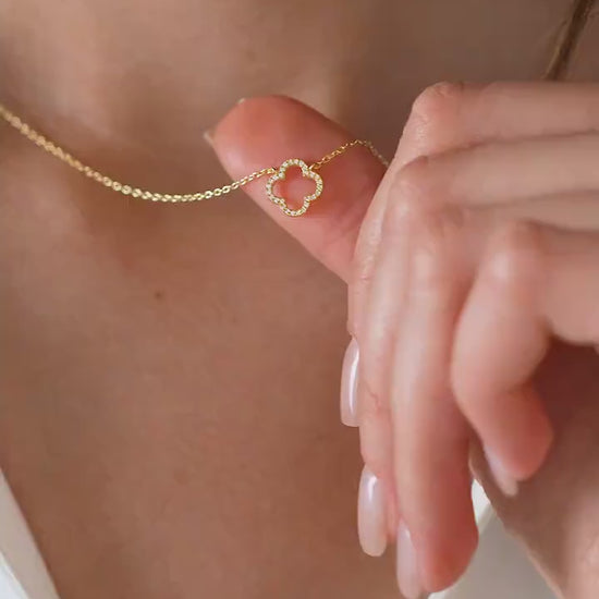 Elevate your style with our S925 Sterling Silver Clover Leaf Necklace paved with gemstone. Crafted with high-quality sterling silver, this necklace is adorned with a sparkling gemstone, adding a touch of elegance to any outfit. Show off your unique sense of style with this charming and versatile piece.